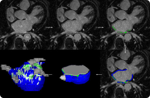 Tools used in the Merisight service incorporate groundbreaking algorithms for 3D image processing and volume visualization to produce detailed models of patient heart structures. It quantifies the extent of the enhancement in the left atrium and computes the amount of AF progression into one of four stages, as defined by the Utah Classification, based on DECAAF research.